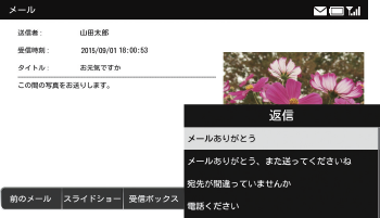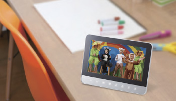 通信機能付きのデジタルフォトフレームだから、スマホや携帯電話などからメールで送られた音声付き動画や、写真をフォトビジョンで再生できます。みんなで一緒に楽しめます。