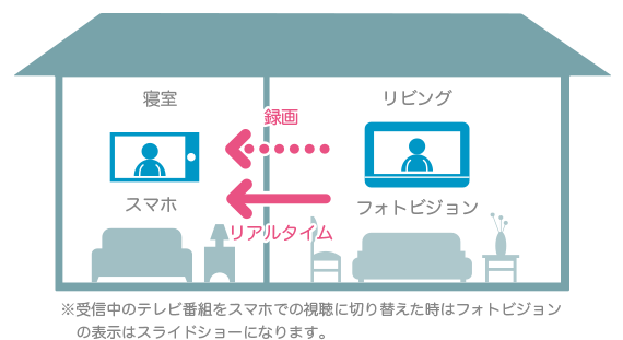 フォトビジョンに録画した番組をスマホにかんたん転送。あとは好きな場所で楽しむ。